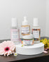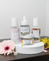 This core collection checks all the boxes and keeps everything looking stunning with botanical powerhouses and flower power! Included in the collection are 4 core products that create a botanical skin ritual that enlivens the spirit and revitalizes the skin. We start with Drama Queen, our gentle foaming cleanser made with raw honey and cucumber seed to nourish and leave skin feeling hydrated and soothed. We next find our signature Rosewater, made with Bulgarian roses (the absolute bestest) and aloe for an extra bit of hydration. The ultimate STUNNER, Beauty Balm is included for all your bio retinol, regenerative, plug-and-play waterless cream that melts into a lux serum and finishes like a moisturizer. To finish, a concentrated serum of your choosing!